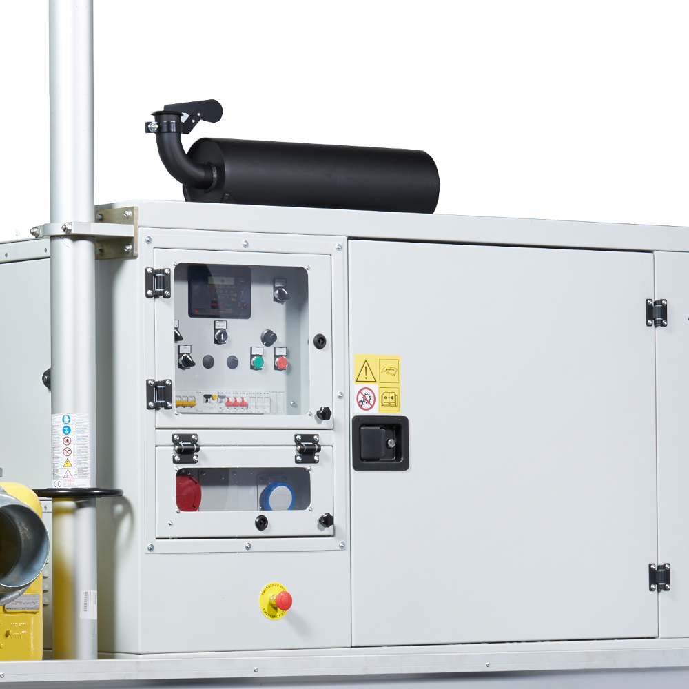 * Un générateur diesel de 20 à 60 Kva pouvant délivrer du monophasé et du triphasé avec un réservoir de 50 litres pour 12H d’autonomie