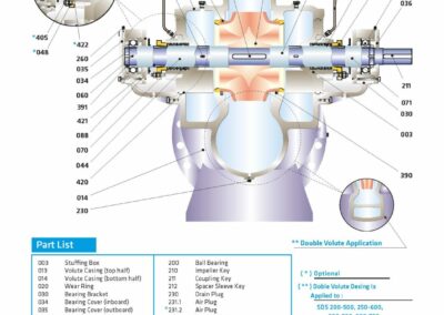 - De plus, les performances d’aspiration sont améliorées grâce à la roue à double aspiration. La pompe assure l’équilibre des forces axiales hydrauliques.