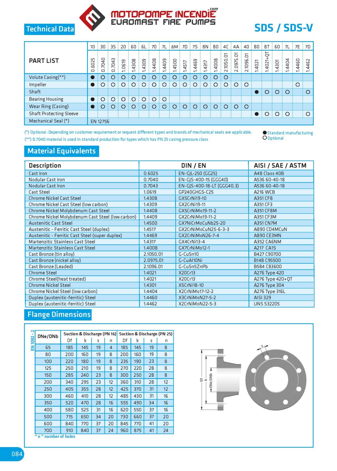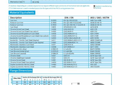 - Les brides d’aspiration et de refoulement sont conformes à la norme EN1092-2/PN 16 ou PN25. (EN 1092-1 / PN 16 ou PN 25 pour les corps en acier ou en acier inoxydable).