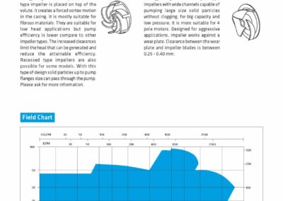 - Pompe centrifuge à un seul étage, à boîtier à volute large, à aspiration finale, avec impulseur fermé, semi-ouvert ou de type vortex, à installation horizontale ou verticale.