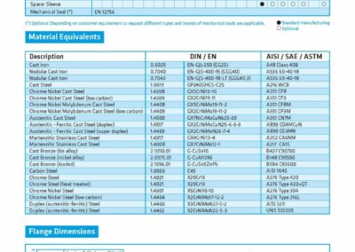 - Options de Joints. Selon la demande du client, des joints mécaniques sont disponibles, avec l’arbre de la pompe toujours en acier inoxydable.