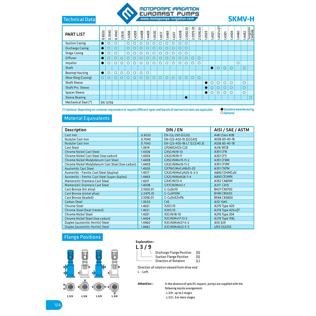 En résumé la pompe SKMV-H brille par son efficacité énergétique et sa polyvalence, assurant une performance optimale dans le refroidissement, l’approvisionnement en eau. Son installation facile et son fonctionnement stable en font le choix idéal pour une variété d’applications industrielles