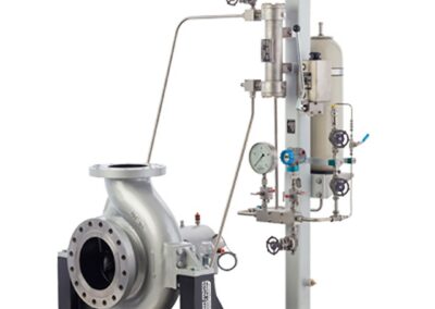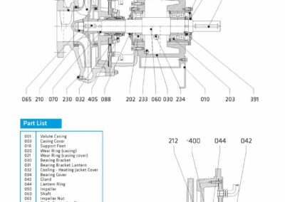 - Étanchéité supérieure; La conception à retrait arrière permet le démontage de l’ensemble de roulement complet, y compris la roue et le couvercle du boîtier, sans retirer la volute du système de tuyauterie.