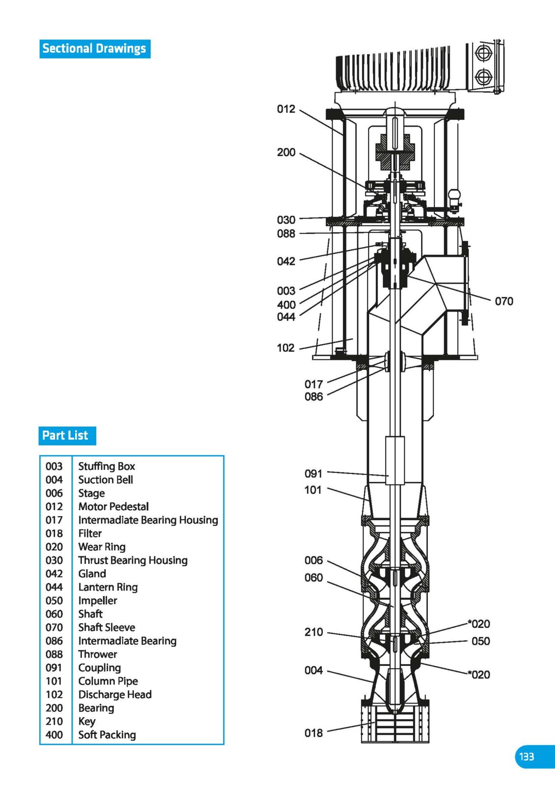 - Généralement composées de groupes d’étages, de groupes de colonnes et de groupes de têtes de refoulement.